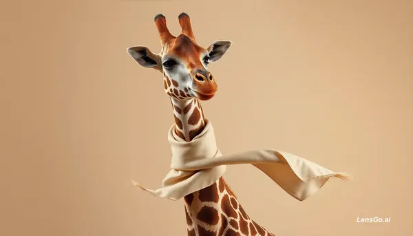 AI Image: Photorealistic giraffe modeling a very long elegant scarf, Zara style fashion campaign, minimal stud