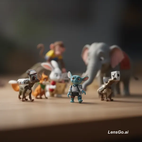 AI Image: Miniature Star Wars inspired creatures walking across a tabletop, tiny detailed figurines with soft